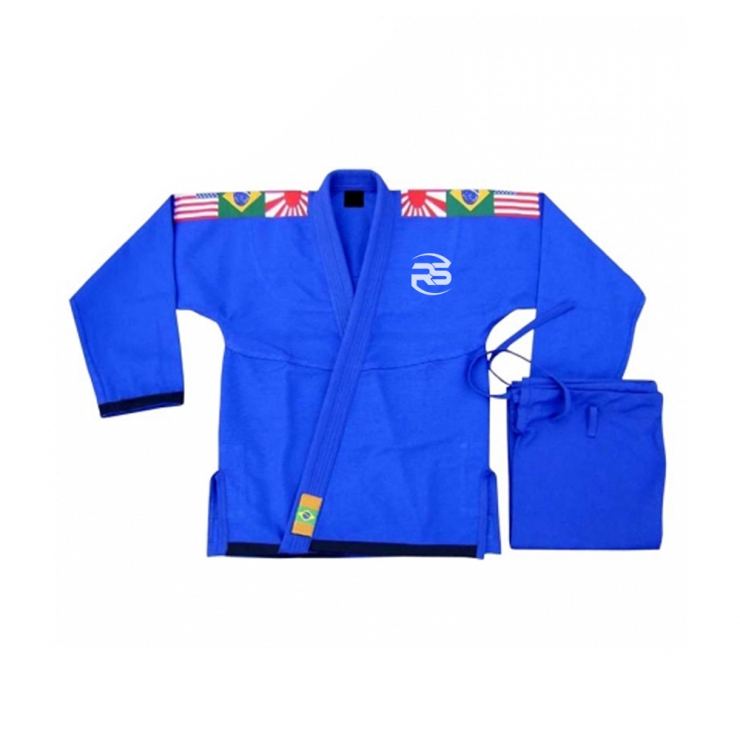 .Jiu Jitsu Uniforms Made of 100% Cotton Single Weave (Also Available in Double Weave) Brushed quality, Heavy weight 15-O-Z (420Gms) Trouser with elastic waist, with out belt Available with Country flags, patches or any of club logos.