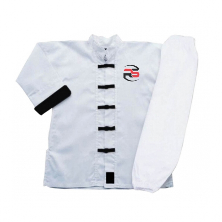 .Kung Fu Uniforms.Made of 100% Cotton.(Also Available in Poly / Cotton / Satin Silk).Medium Weight 8.5-oz, White Color. Button Black,.Trouser elastic & draw string waist..Size: 000 to 7..Color: White.